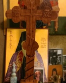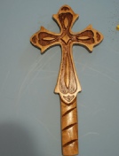 Approx 10” tall 6 inch w/ 4 in. handle dual stained