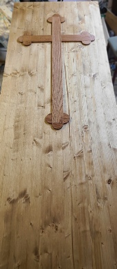 Orthodox cross placed on lid of coffin pine: $100