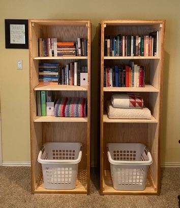 4 16” deep removable solid wood shelves to allow coffin to be used as a bookshelf if desired